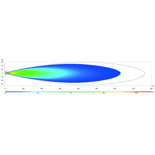 Ljuslängd vid 1 lux: 770 meter (Boostläge)