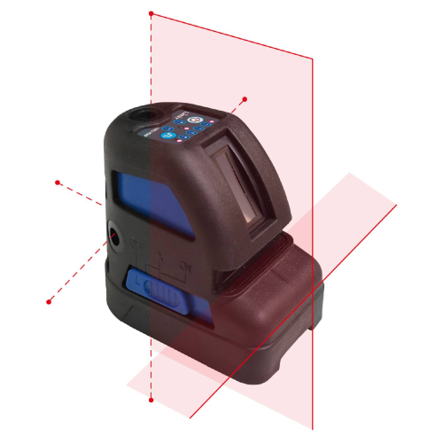 Kombinerad korslaser och punktlaser med starka och skarpa röda laserlinjer. En horisontal och en vertikal linje och 5 punkter. Den vertikala linjen når 115 grader upp i taket. Linjerna och punkterna kan tändas var för sig eller tillsammans. Självnivellerande med magnetisk pendeldämpning som varnar med blinkande laser och ljud när lasern ej klarar att nivellera. Huvudströmbrytaren ger mekanisk låsning av pendeln fungerar därmed som transportsäkring. Kan användas utomhus eller i ljusa lokaler med en separat lasermottagare (ingår ej). 2 st laserdioder 15 mw, 635 nm för linjerna och 1 st 10 mw, 635 nm för punkterna. Levereras tillsammans fäste för stativ/väggmontering, reflektortavla, mjuk väska och batterier.