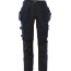 Slitstark hantverksbyxa i dammodell med stora partier av 4-vägsstretch framtill, baktill och på benen, vilket optimerar rörelsefriheten. Tillverkad av bekväm bomull och återvunnen polyester, med praktiska ficklösningar och Cordura-förstärkningar. 2 löst hängande Cordura-förstärkta spikfickor, den ena med 3 mindre fickor och verktygshällor, den andra med två fickor varav en med dragkedja. D-ring under spikficka. 2 framfickor. 2 sidfickor, den ena med dragkedja. 2 Cordura-förstärkta bakfickor med lös botten. Cordura-förstärkt tumstocksficka med verktygsficka, pennficka samt knapp och hälla för kniv. Rymlig benficka med tryckknapp, vattentät ficka med dragkedja, telefonficka och extra ficka med D-ring för id-kortshållare. Hammarhank. Dubbel förstärkt grensöm. Knäfickor i Cordura med öppning utifrån, uppifrån. Knäskydden i knäfickorna kan höjdjusteras. Cordura-förstärkta benslut, reglerbara med tryckknappar. Reflexdetaljer på bakbenen. Tvätt 60°C.