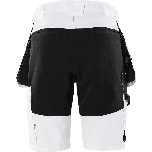 Målarshorts i 4-vägsstretch för optimal lättviktskomfort och rörelsefrihet. Fullt utrustad och förstärkt hantverkarmodell med fickor och funktioner som är speciellt utformade för att passa målare. Linning med infälld sidoresår. Dold knapp i midjan. 2 löst hängande Cordura-förstärkta spikfickor, anpassade för målarverktyg med 3 mindre fickor och verktygshällor samt extra ficka med dragkedja. D-ring under spikfickan. 2 framfickor. 2 bakfickor, helfodrade med Cordura, även för verktyg och sandpapper. Dubbel förstärkt grensöm. Hälla för trasa, med tryckknapp. Rymlig benficka för tumstock och målarverktyg i Cordura, Cordura-förstärkta fickor för verktyg och mattkniv, pennficka samt knapp och hälla för kniv. Benficka med tryckknapp och stor damm- och vattenskyddad ficka med dragkedja för t ex telefon. Tvätt 60°C.