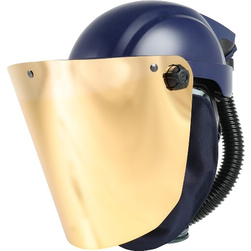 Skyddshjälm med uppfällbart visir. Skyddar andningszonen och huvudet. Slag- och reptålig PC-siktskiva. Reglerbar huvudställning. Tillförd luft håller visiret imfritt. Utbytbar flexibel andningsslang. Försedd med utandningsventil.